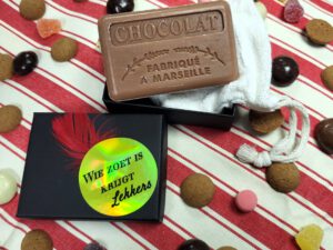 sinterklaas cadeautje chocolade zeep met bamboe zeepzakje