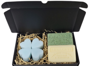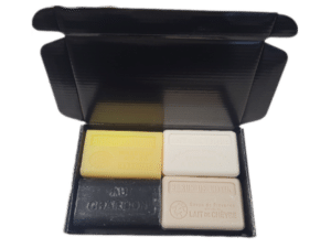 Savon de Marseille cadeauset: Musc, Fleur de coton, chevrefeuille, Pavot, Huile d’argan, Huile d’olive